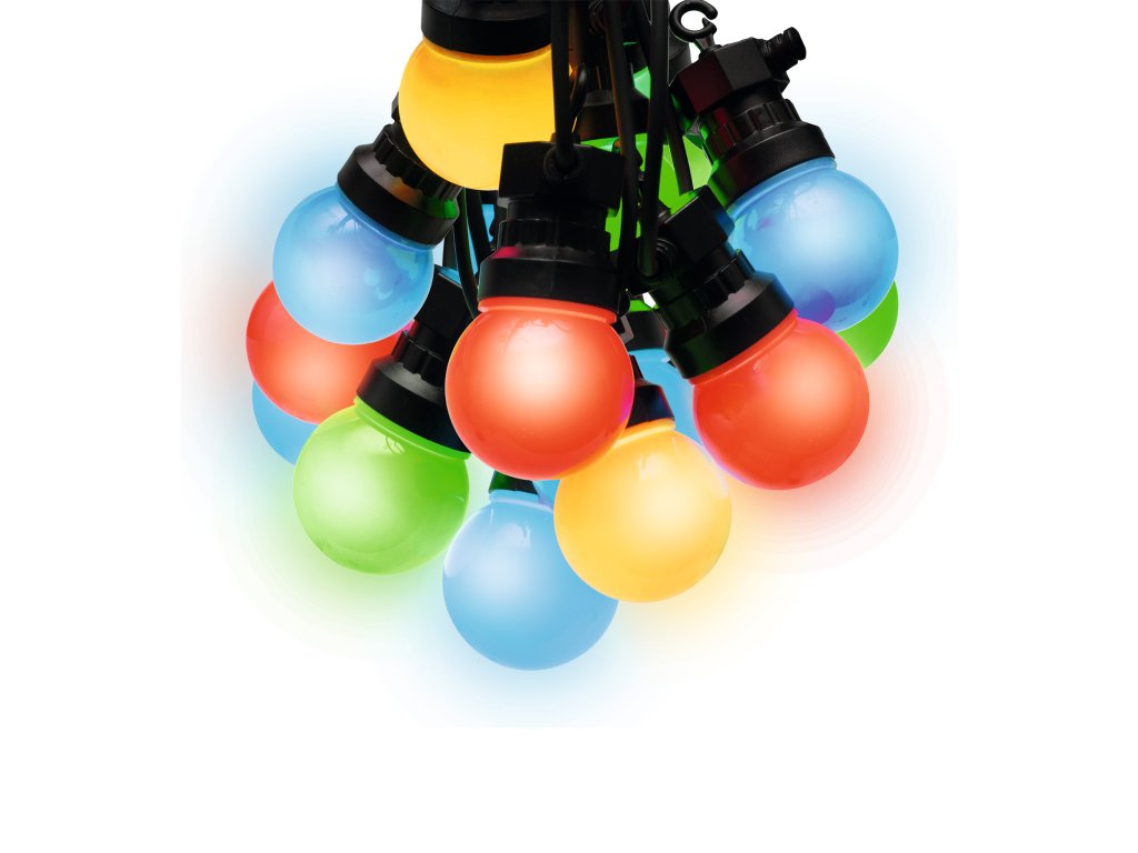 Spojovatelný LED svítící řetězec pro venkovní použití, 10 barevných koulí, 5 m